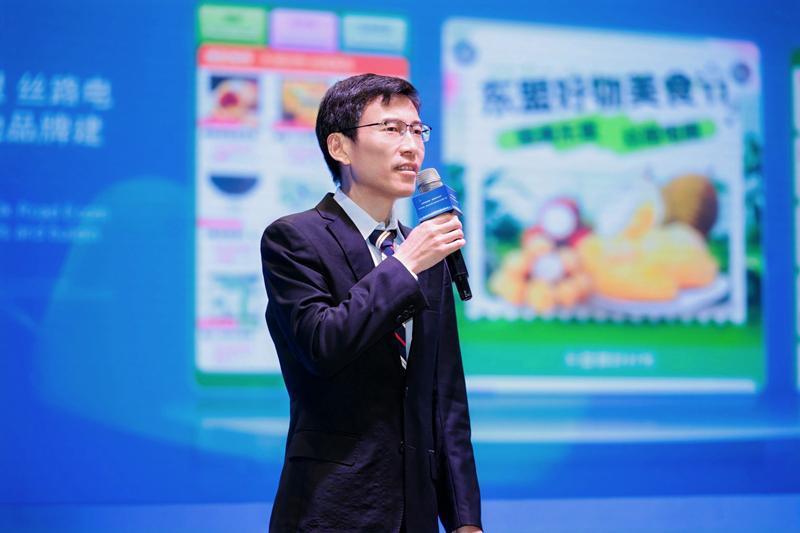 淘天集团公共事务副总裁王浩洋介绍“味美东盟 丝路电商”专区。主办方供图