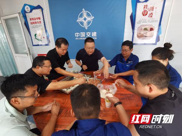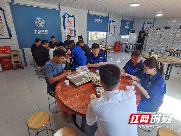 红网时刻新闻10月9日讯(通讯员 高强)国庆、中秋双节期间,桂新高速公路建设现场不停工。各标段建设者放弃与家人团聚,坚守岗位推进工程,全力保障项目按计划推进。10月6日中午,各标段值班领导暂别忙碌的施工现场,齐聚第四合同段项目部,以包饺子的方式共度双节。桂新高速项目目前正处于施工关键阶段,全线各作业面正安全、高效地协同推进。双节期间,各标段施工现场秩序井然,建设者们坚守岗位,将安全与质量放在首位:一方面严格遵循标准化作业流程,全面加强现场安全管控,细致排查各类安全隐患;另一方面精细把控每一道工序质量,不放过任何细节,通过强化过程监督与实时检测,全力守住安全底线、筑牢质量根基。