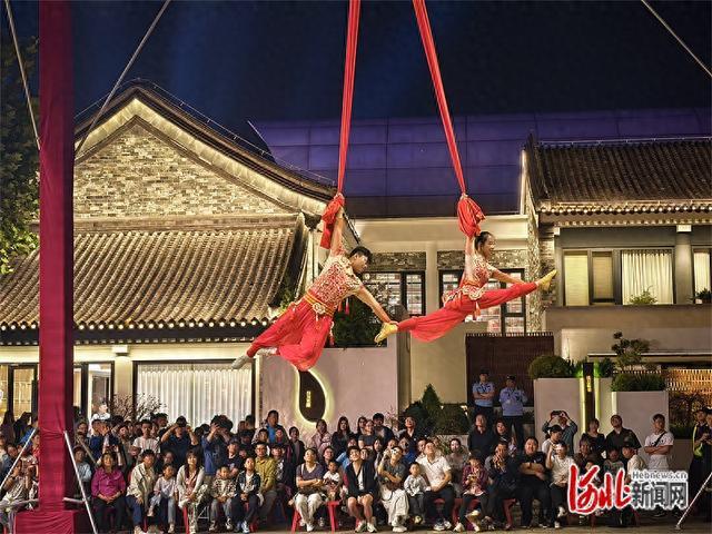 10月2日晚,游客在河头老街景区观赏杂技表演。 河北日报记者王育民摄