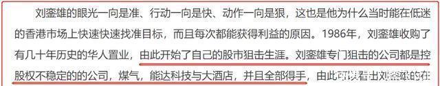然而,谁也没想到,这样一个节约到抠门的家伙,日后竟会为了春宵一夜,频频对女明星一掷千金…… 二、 1983年,在妻子宝咏琴的帮助下,刘銮雄将爱美高公司上市,总资产一下达到了5亿元,一直辛辛苦苦干实业的他,第一次感受到了股市那股强大的膨大效果。 然而,还没等他高兴起来,作为创始人的他很快就感受到了股市带给他的强烈冲击力,因为他被大股东排挤,愤而将手中股票变现离场了。 创始人离开,不少股民闻风而动,纷纷抛售手中的爱美高股票,一时间,爱美高股票瞬间从4元跌到7毛,手握大量现金的刘銮雄抄底买入,重掌公司大权,还赚得盆满钵满。 玩了一把如此刺激的股市游戏后,刘銮雄很快上瘾,凭借快准狠的作风,迅速成为了“香港股市狙击手”,每次都精准狙击那些控股权不稳的上市公司,每次都大胜而归,资本在股市里快速膨胀,顶级富豪地位更加坚挺……